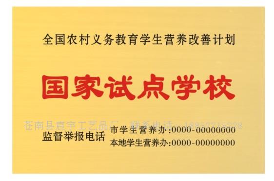“全国农村义务教育学生营养改善计划国家试点学校”标志牌制作